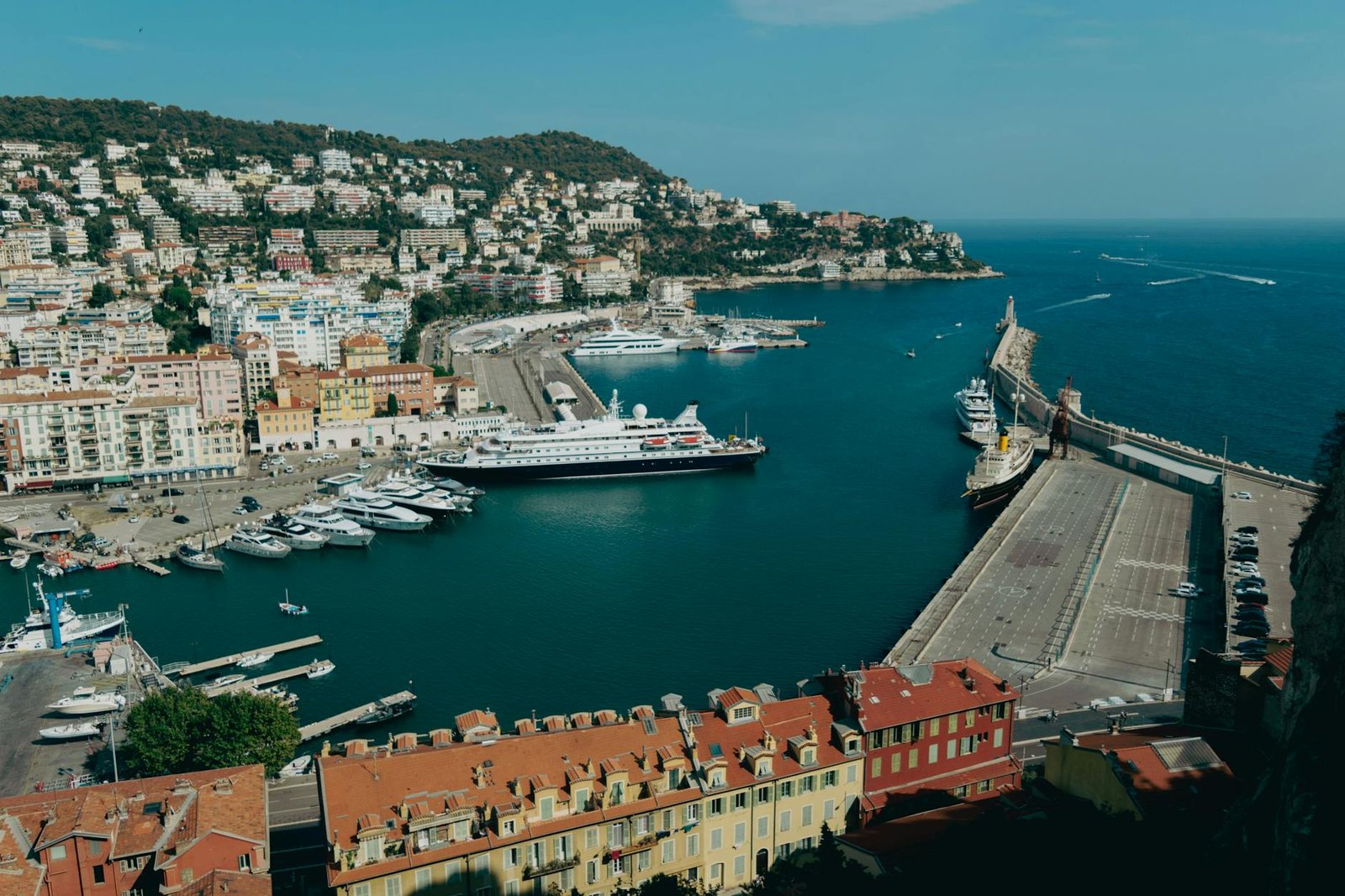 4. Castle Hill (Colline du Château) (Free) — Take the free elevator at the end of the Promenade; the panoramic view over the bay, the old port, and the red rooftops is the best free thing in Nice. 45 minutes.