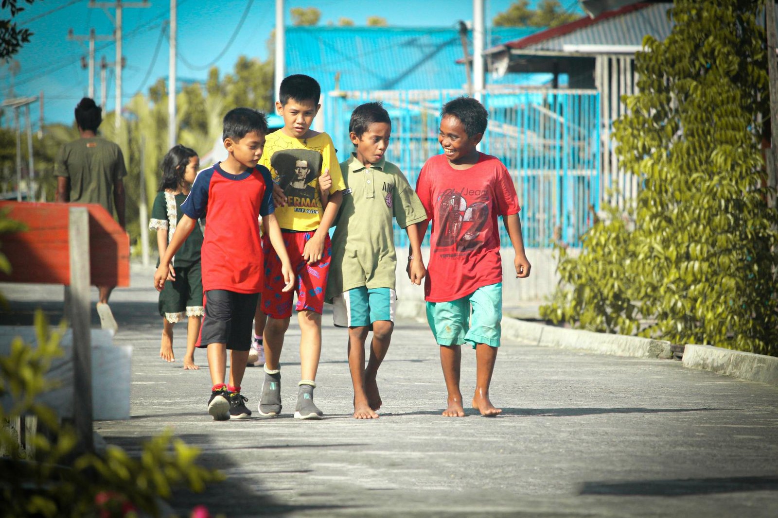 The town is compact and entirely walkable, though “walking” here means navigating a maze of wooden boardwalks elevated above tidal mud and mangrove roots — there are virtually no paved roads. Wear shoes with grip and expect the planks to be uneven, slippery, and occasionally missing.